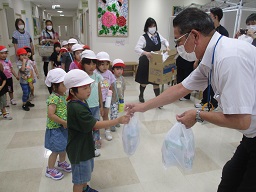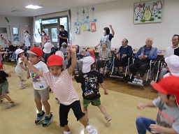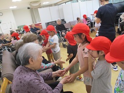 西東京ケアセンターに行ってきました 2023/07/06 4年ぶりに幼児クラス全員で西東京ケアセンターに行ってきました。手遊びやダンスを披露して、おじいちゃんおばあちゃんとの触れ合いを楽しみました。最後にはお土産をもらって大喜びの子どもたちでした。2023-07-03